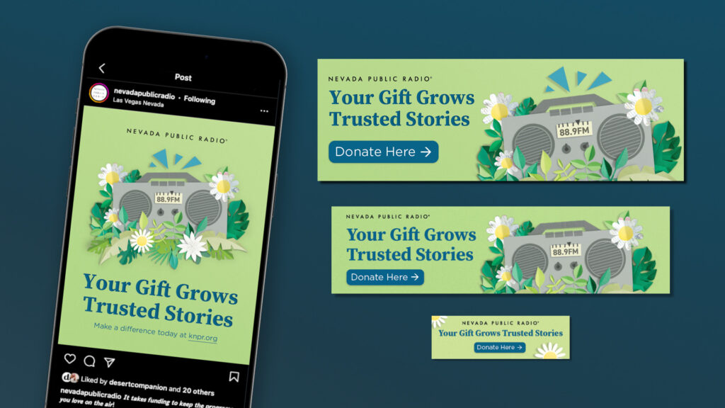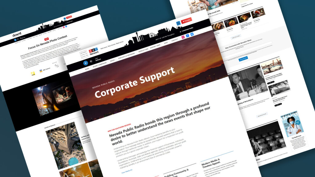 Visually, Nevada Public Radio now speaks with one voice. Print, digital, events, and donor materials share a unified palette, typography, and design philosophy. The fragmentation is gone—replaced by a system that feels solid, trustworthy, and grounded in a chaotic media landscape.