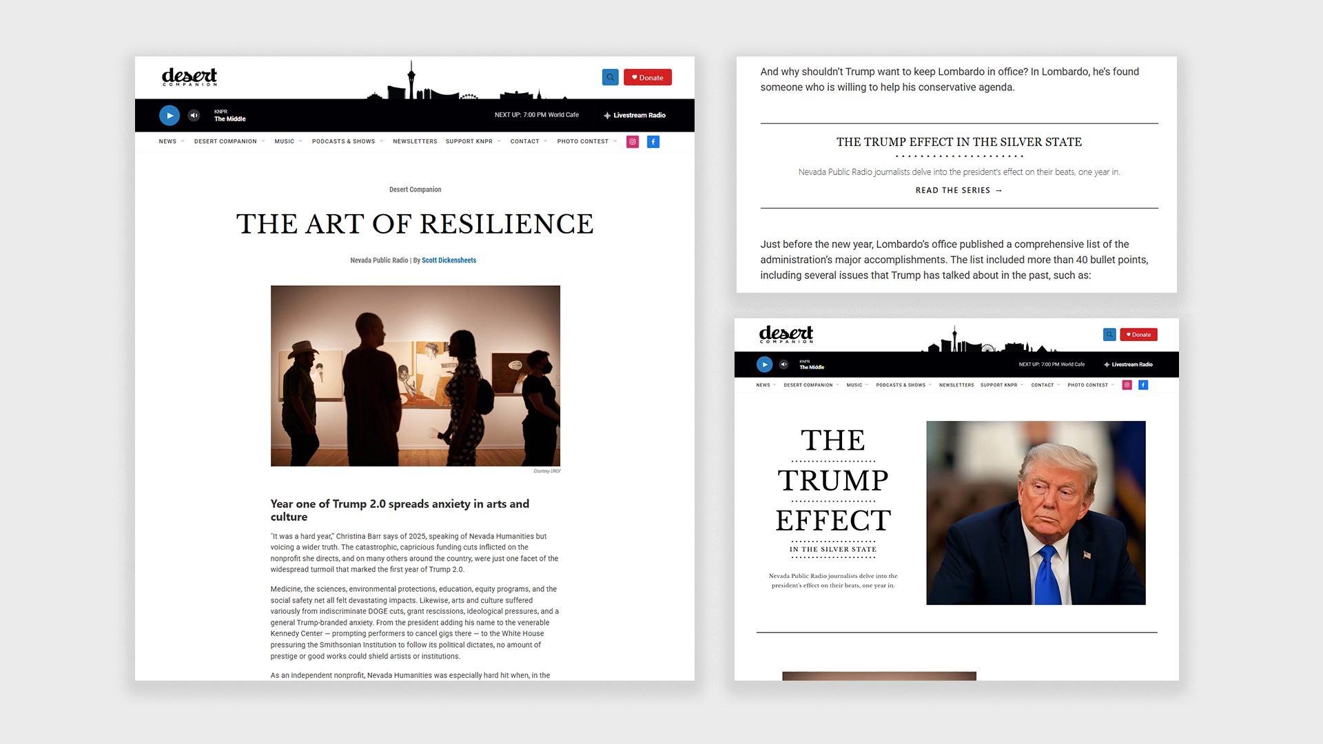 I built coherence. I established a restrained palette, consistent typography, and a design philosophy rooted in trust and simplicity. News is chaotic; Nevada Public Radio should feel like the grounding readers are searching for—solid, trustworthy, here to serve.